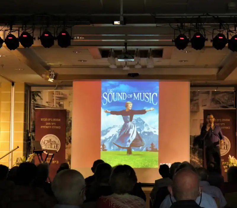 אייל סיפר לקהל כיצד נוצר המחזמר "צלילי המוזיקה" בשנת 1959 על ידי המלחין היהודי ריצ׳רד רוג׳רס והתמלילן אוסקר המרשטיין השני.